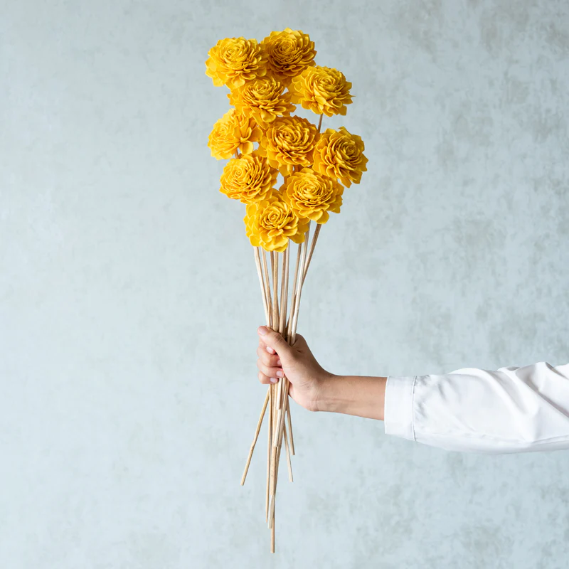 Musa Sola Wood Rose Flower Stick (Yellow) – Set Of Ten