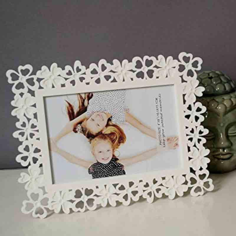 This adorable white photo frame is like a hug for your pictures! With its charming floral lace design, its the perfect tabletop companion. Who wouldnt want a bit of elegance on their desk or shelf? Made from sturdy MDF, its ready to showcase your favorite memories. And lets be honest, isnt it time your photos got a stylish home too? Just imagine: Sunday morning, coffee in hand, and this lovely frame reminding you of cherished moments. Ah, bliss!