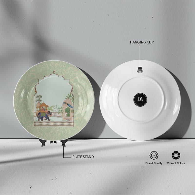You know what your home needs? A touch of the Mughal era! This bone china plate is like a piece of art straight out of a storybook. With its rich colors and intricate design, its more than just dcorits history on display. Who wouldnt want an elephant and peacock gracing their wall? And heres the thingits not just for show; you can also use it on a table. Imagine a lazy Sunday chai with this beauty catching the light. Blissful.