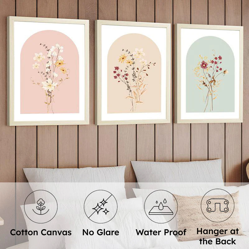 Looking to add some charm to your space? This set of three framed floral prints is just what your walls need. Each piece features a delicate botanical design on soft pastel backgroundspink, beige, and mint. Perfect for creating that cozy, nature-inspired vibe. And here’s the thing: They’re as easy to hang as they are to admire! Imagine these beauties above your sofa while you sip your Sunday coffee, curtains swaying in a gentle breeze. Bliss!