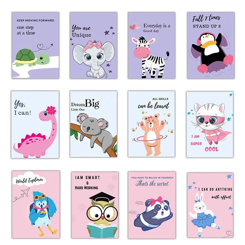 Looking for something to brighten up the nursery? These whimsical wall posters are just the ticket! Each one has adorable animalstheres an elephant, a penguinyou name it, encouraging kids with sweet quotes. It’s like a mini zoo that cheers you on! And who doesnt love a burst of color? Easy to put up, theyll transform any wall into a playful gallery. Well, heres the thingyour little one might just find their new favorite pal up there. Picture this: a lazy Sunday, giggles from the playroom, and these happy faces smiling down. Magic!